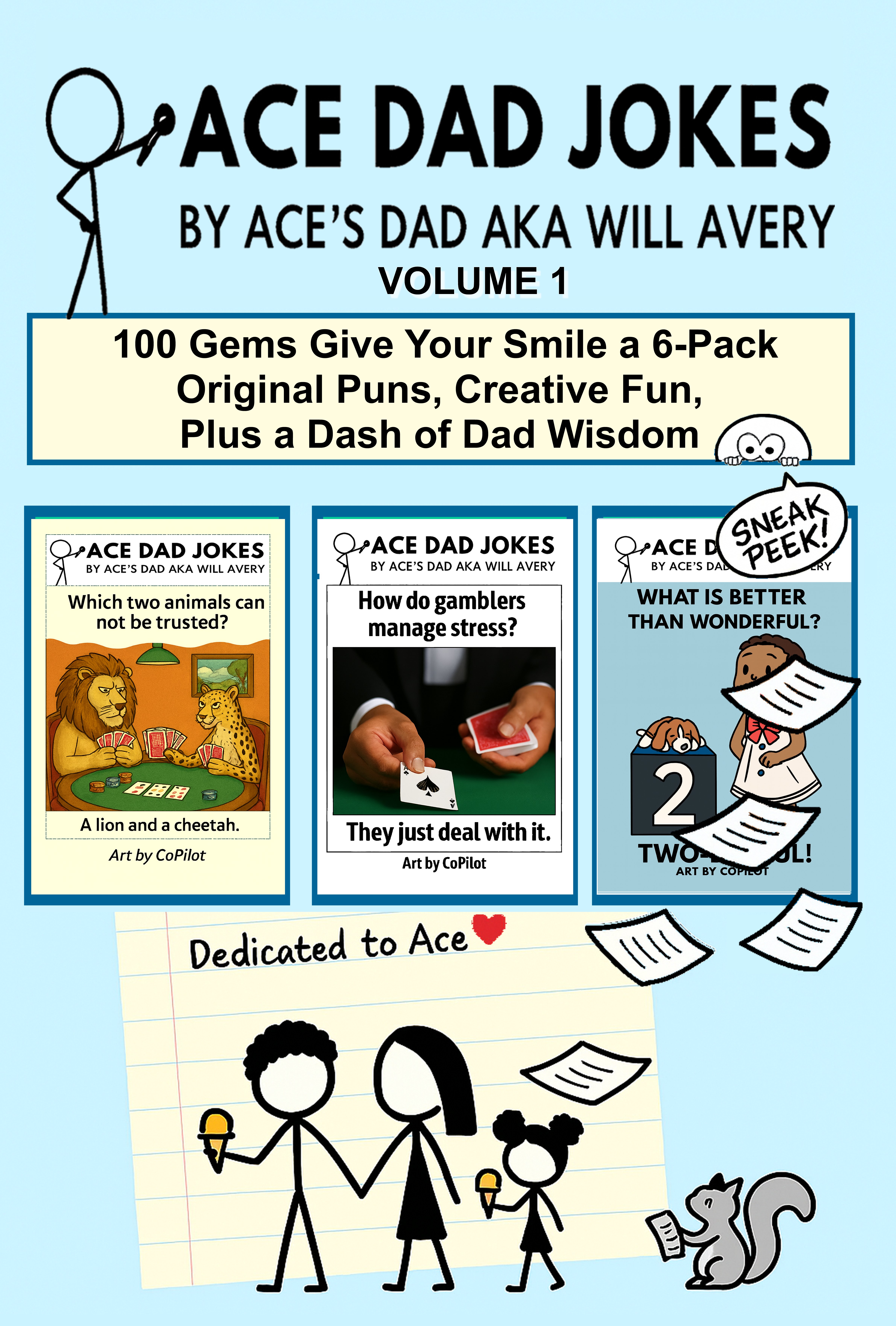 Coming soon: my first self-published book, ACE DAD JOKES BY ACE'D DAD WILL AVERY VOLUME 1, with more volumes on the way.